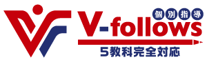 V-follows(ファイブフォローズ)では、独自の5教科完全対応システムにより、集団塾と同程度の費用で、中学の定期テスト対策から高校入試まで必要な5教科すべてをカバーします。